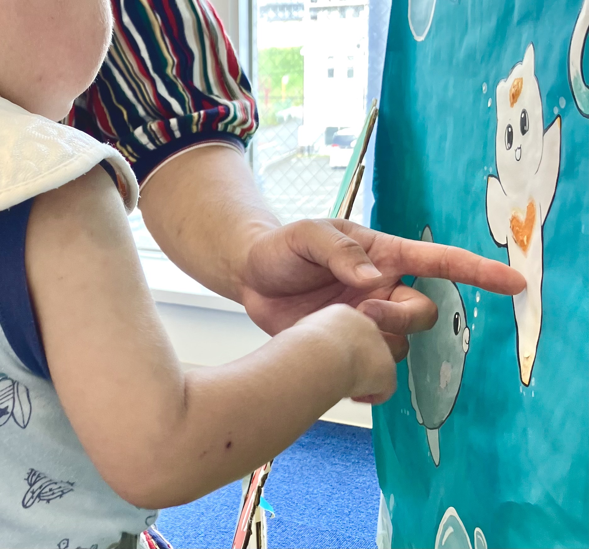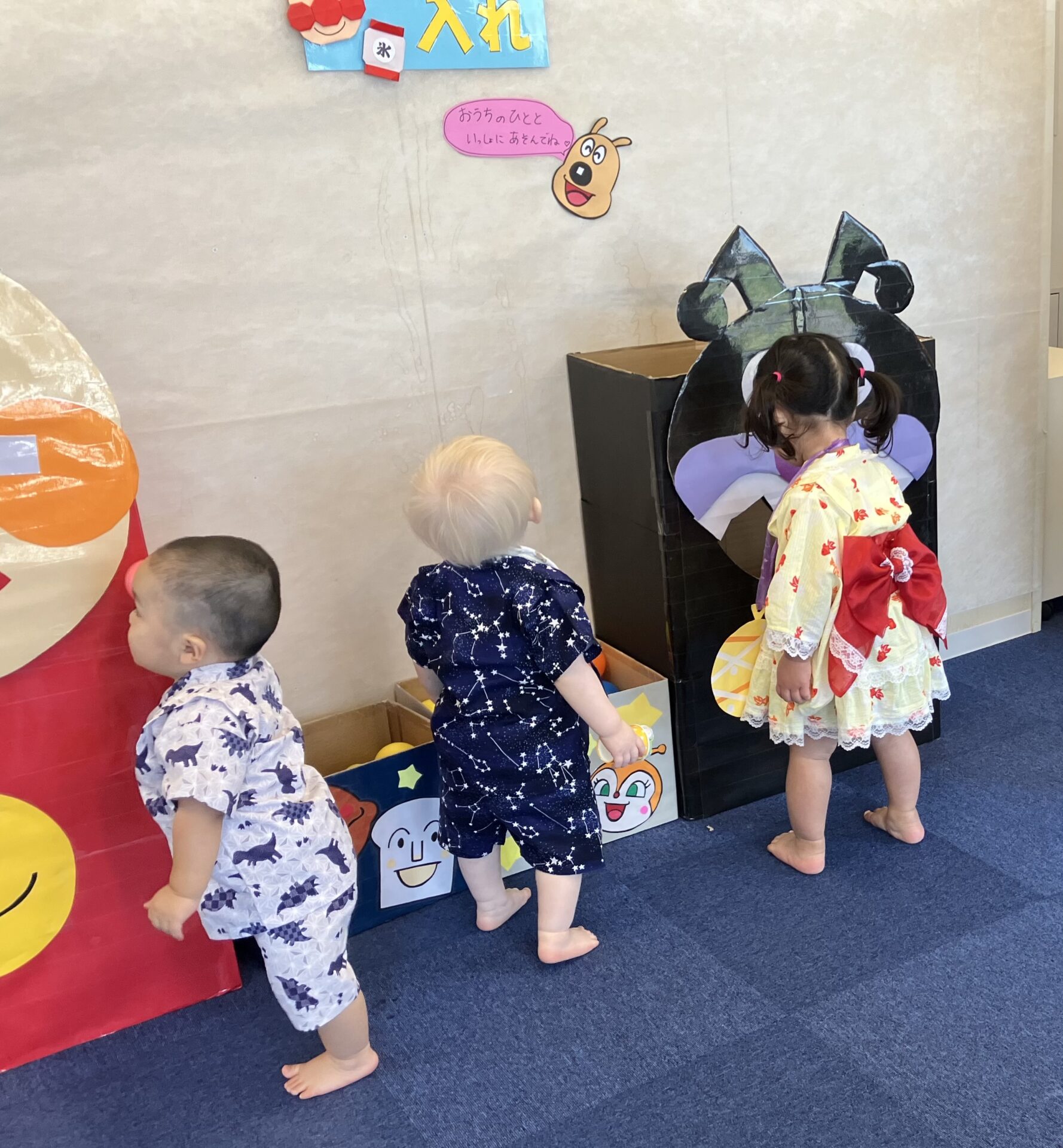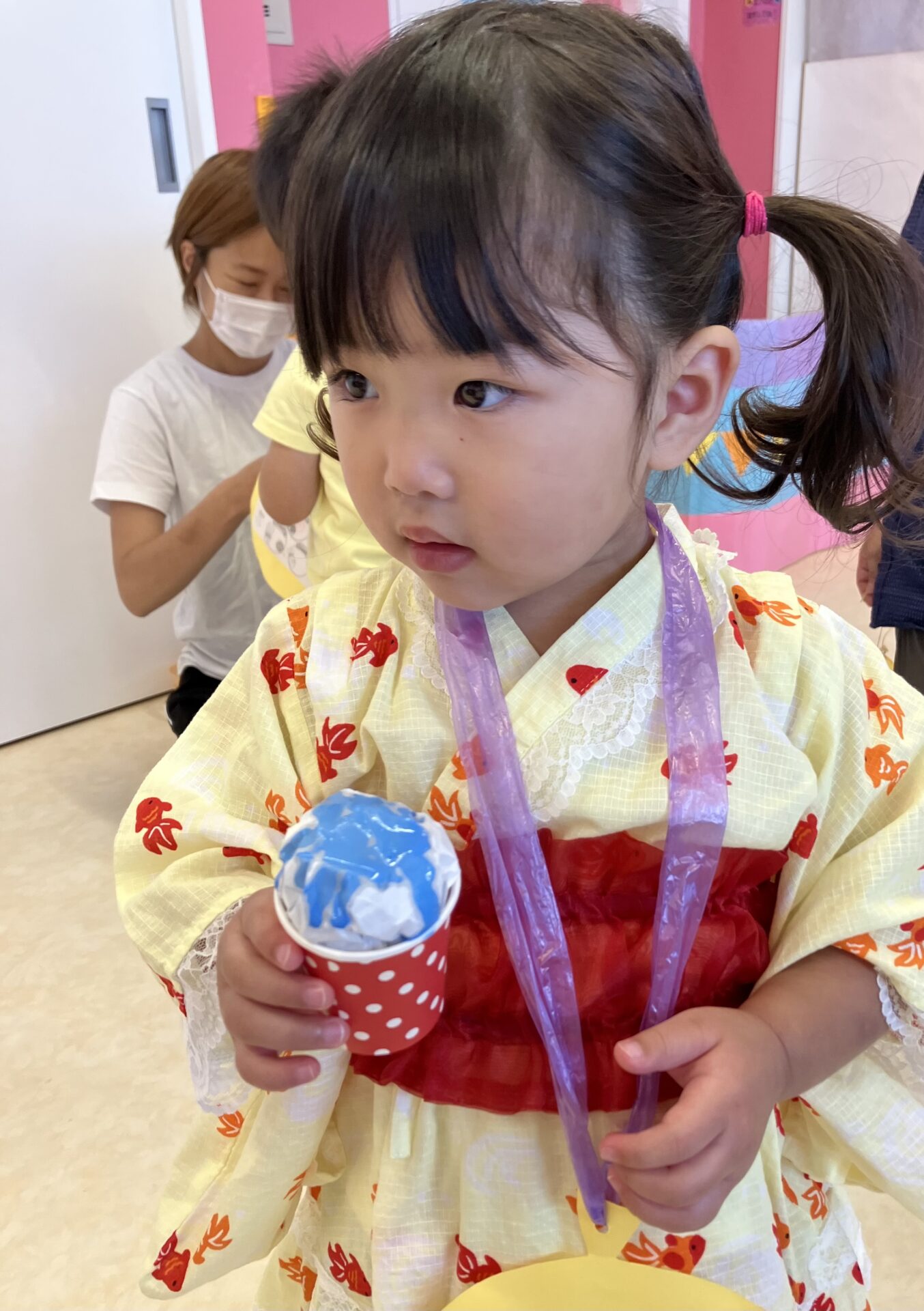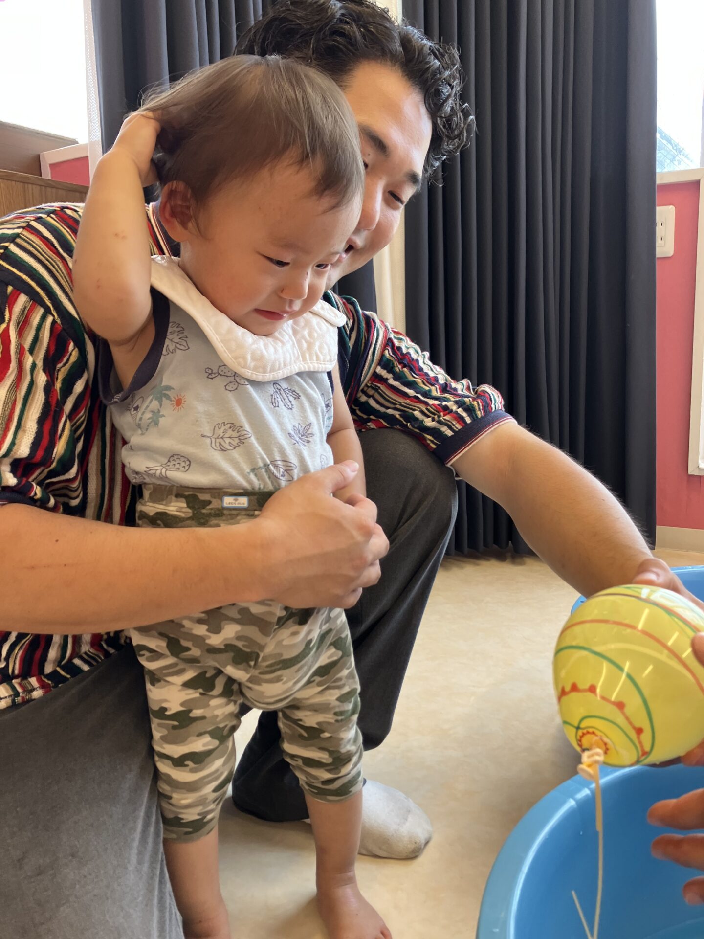 お父さんと一緒に頑張ってヨーヨーを釣ることが