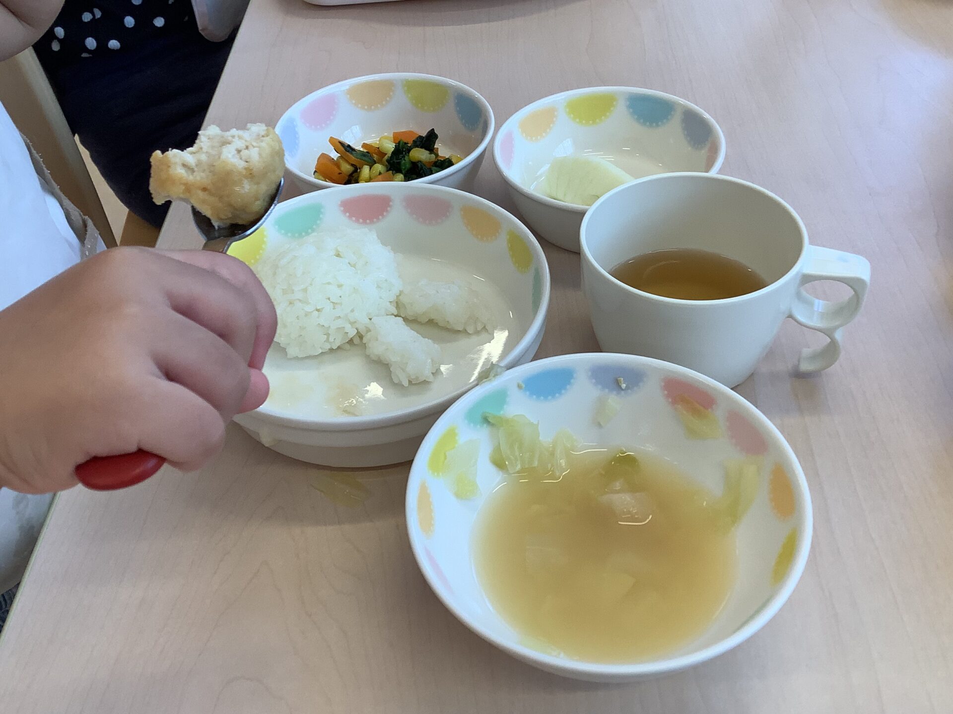 保育園でおだんごを提供することは難しいですが、お月さまのように まあるい「つくねだんご」を給食で楽しみました。