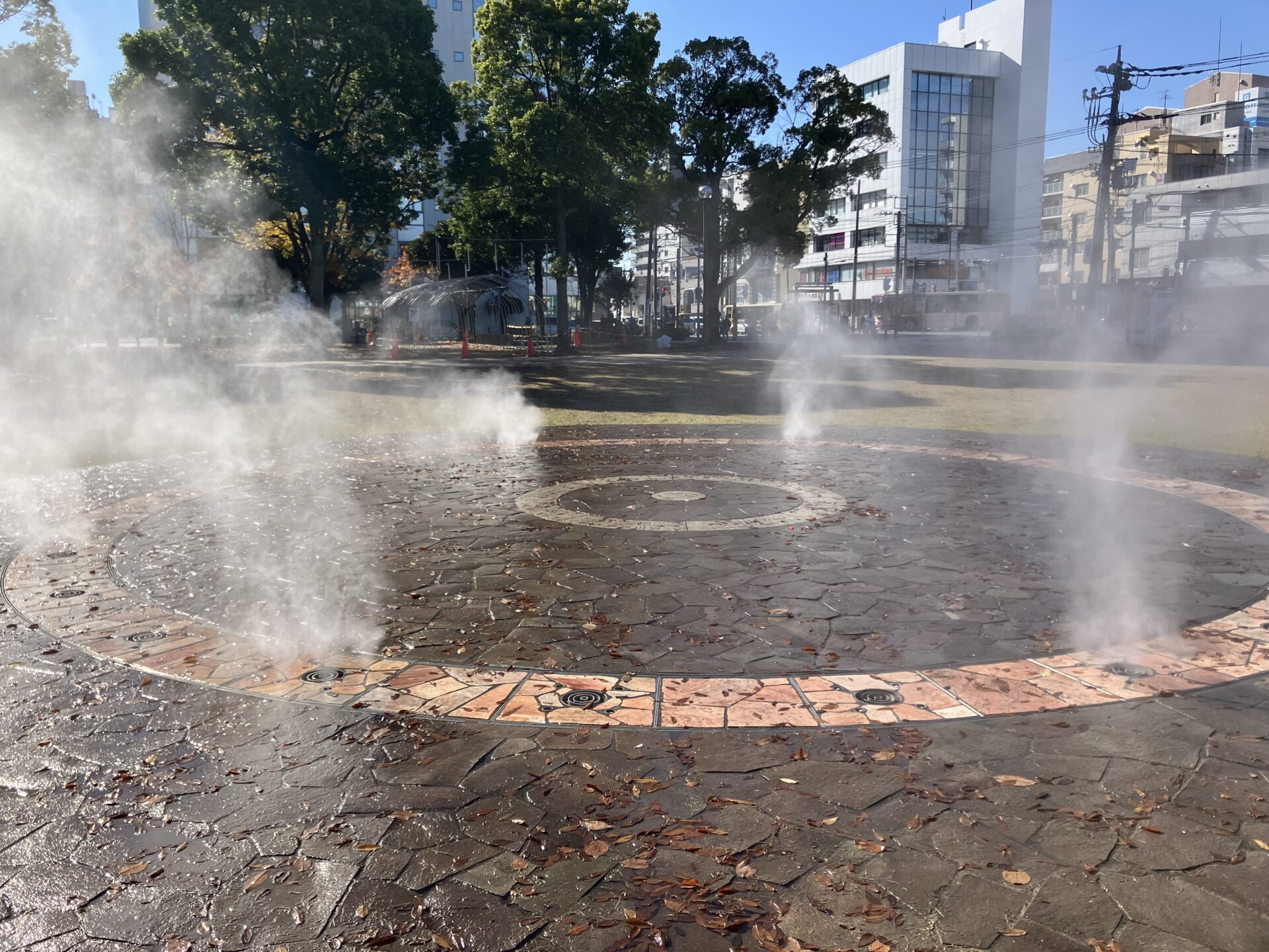 その後も、噴水近くの広場で沢山体を動かしたり、色付く葉っぱを集めたり…水溜まりを探したりしながらご飯まで過ごしました。