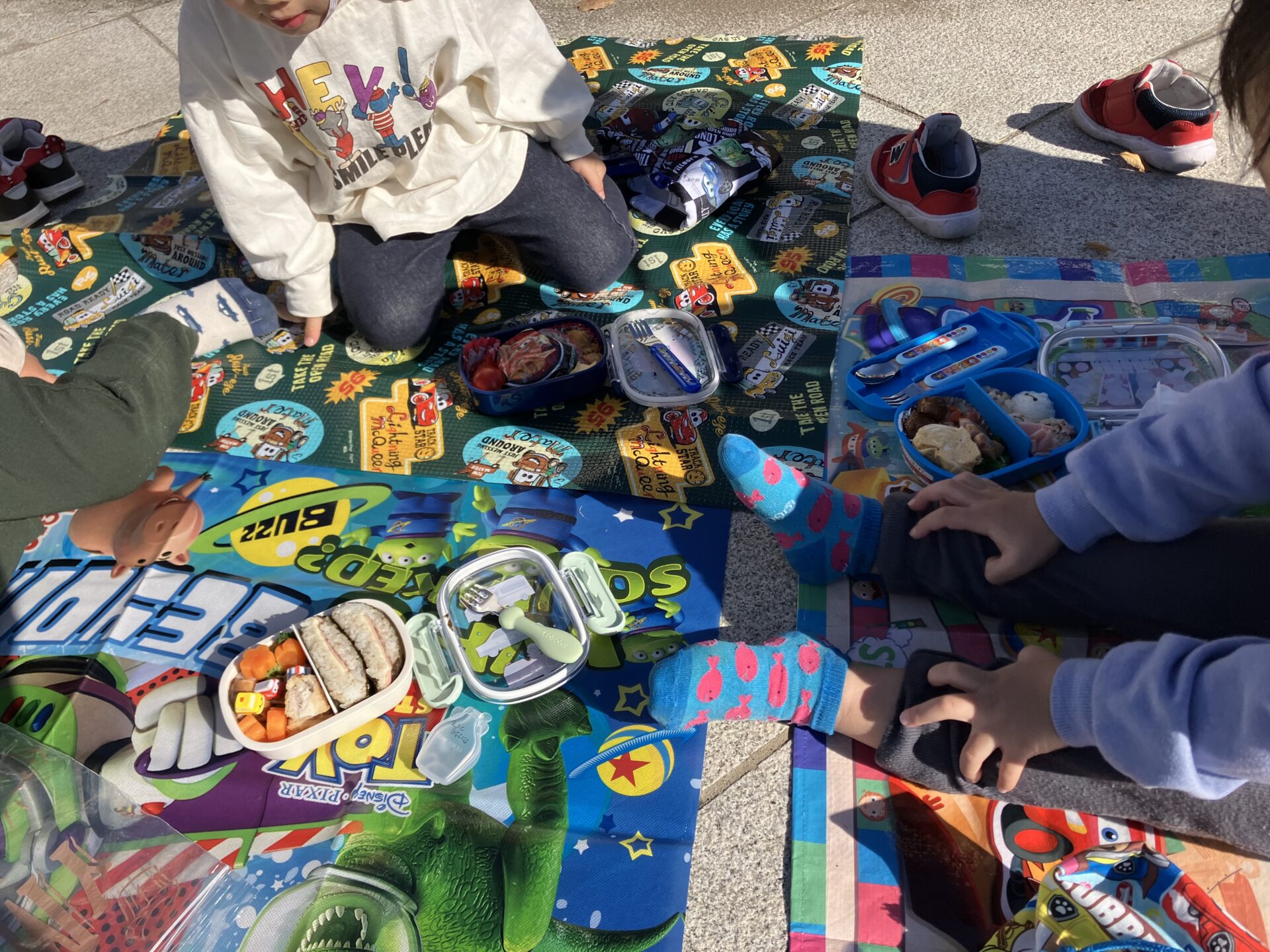 待ちにまったお弁当の時間がやって来ました。嬉しそうに、お弁当箱を開けてみんなでいただきますをしました。