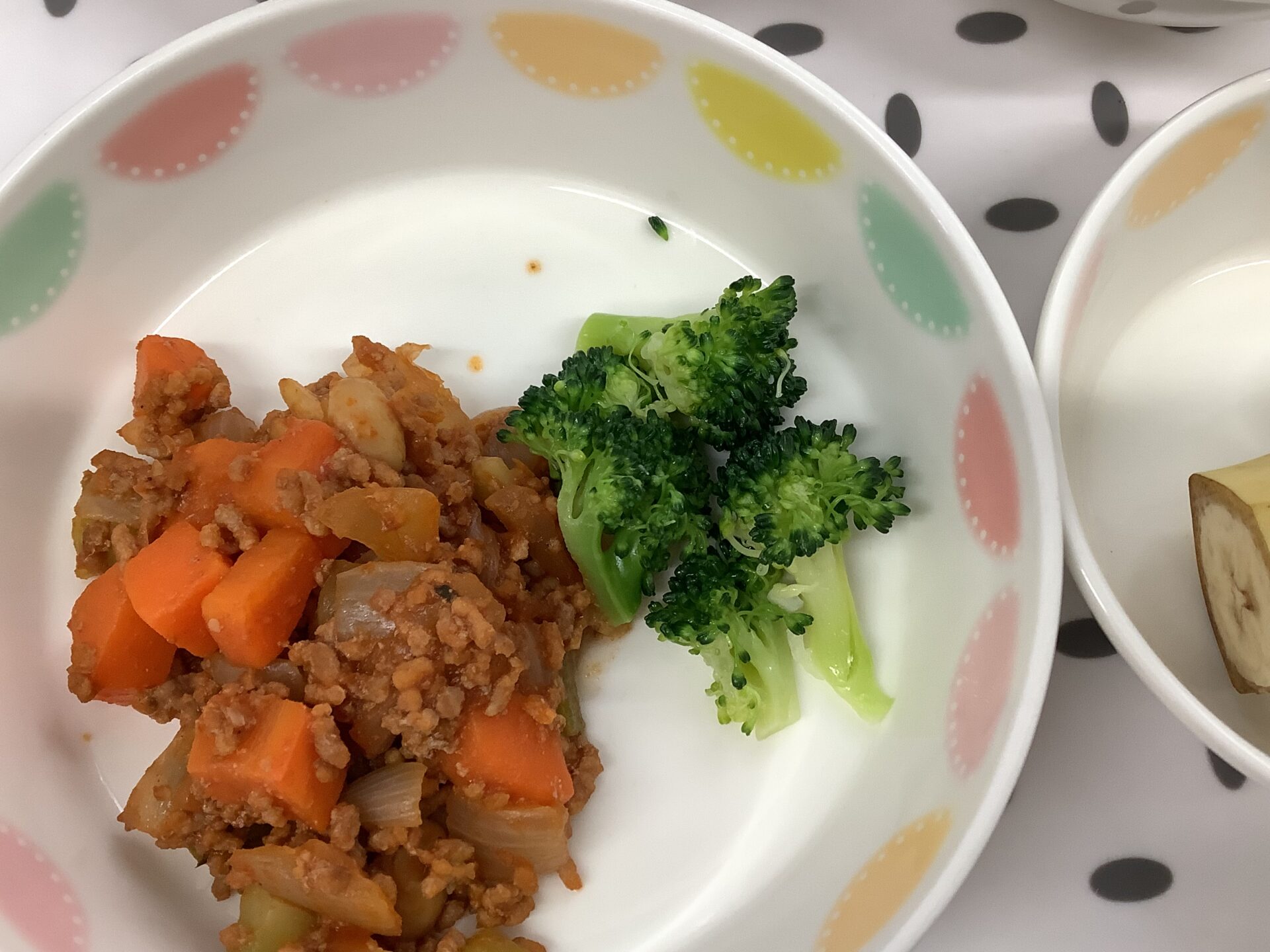 この日の給食は「野菜のチリコンカン」と「ブロッコリーのソテー」をみんなでいただきました。