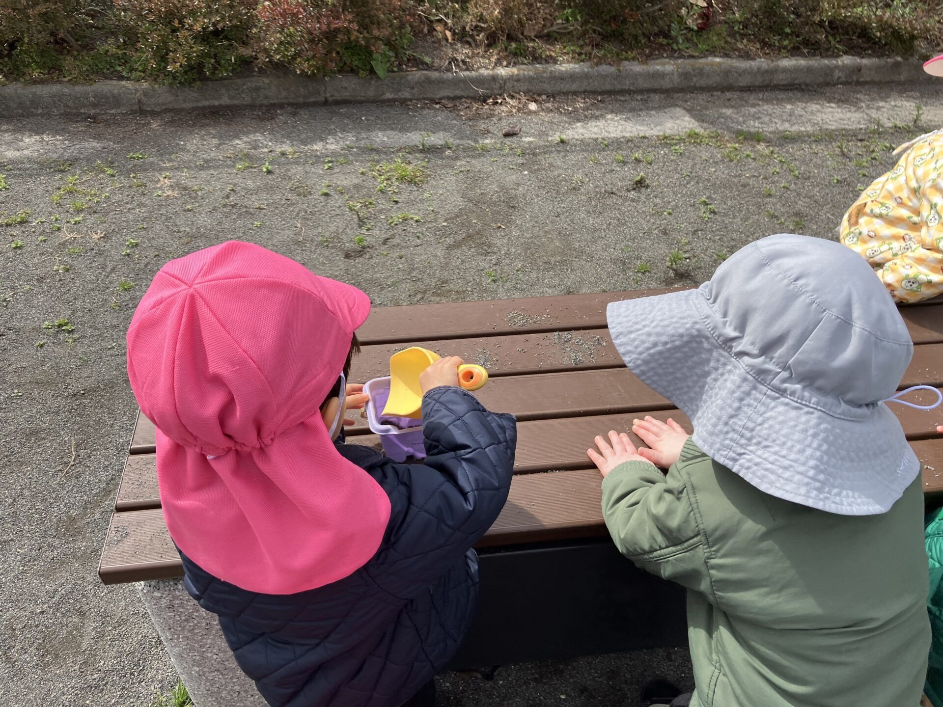 寒い日もまだありますが、だんだんと春の気配が近づいてきて、子どもたちもポカポカ陽気の中のびのびと公園で遊んでいます。