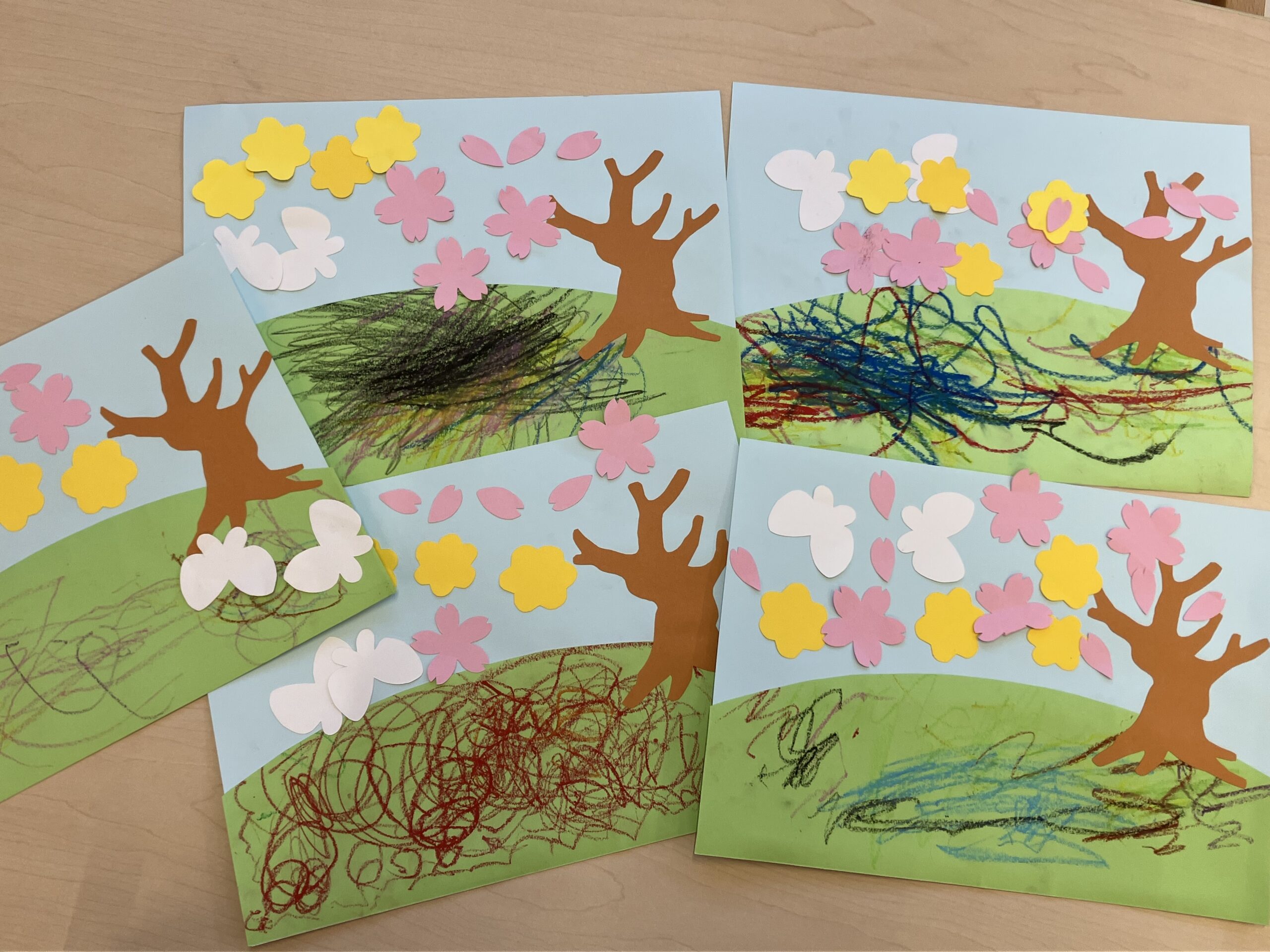 かなで組さんになって初めての製作は、そんな散歩先でつけた春の景色を作品にしました。